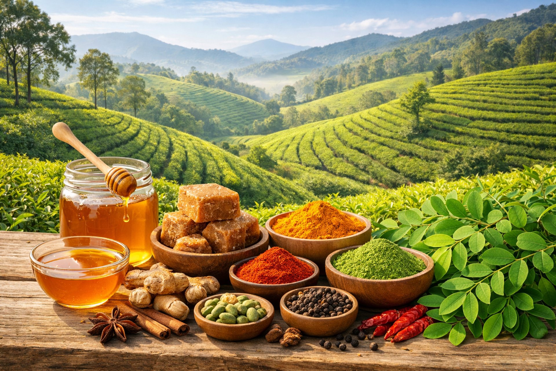 Our portfolio includes unflavored and blended green teas, honey combined with herbs and spices traditionally used in food preparation, as well as selected natural sweeteners and spice products. All offerings are developed without artificial colors, flavors, or additives and are intended for international markets.