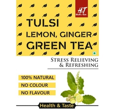 Tulsi contributes a mild herbal aroma, lemon adds a crisp citrus note, and ginger provides a light warming character. The overall infusion is smooth, aromatic, and well-rounded, with the natural mild bitterness of green tea controlled.
