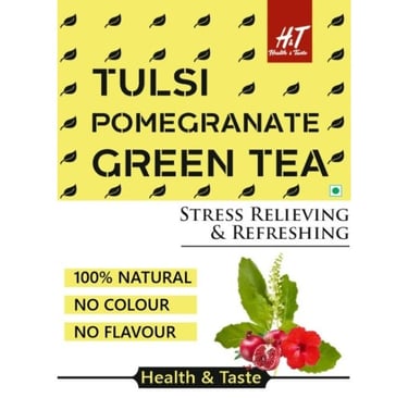 Tulsi provides a mild herbal aroma, while pomegranate adds gentle fruity notes that complement the green tea base. The infusion is smooth, aromatic, and balanced, with the natural mild bitterness of green tea preserved.
